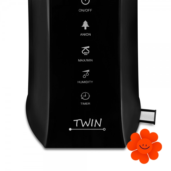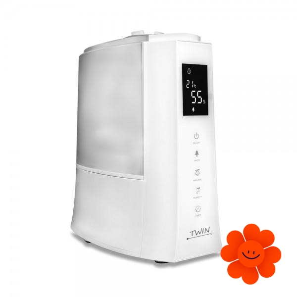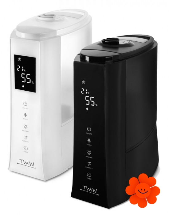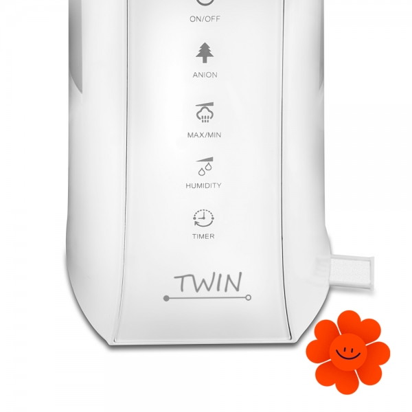 TWIN gehört zu mehr zweckmäßigen Geräten, die außer der Hauptfunktion der Luftbefeuchtung (der Ultraschallb.) auch die Luft im Raum mithilfe des Ionisators (3 000 000 Ionen / cm3) reinigen hilft. Noch dazu können Sie mit ihm Ihr Zuhause mittels der essentiellen Öle durchduften.