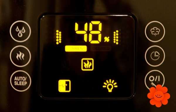 • aus 2 Betriebsmodi AUTO (automatische Feuchtigkeitsstufe und Abschaltung) und SLEEP wählen (Gerät schaltet sich nach 6 Stunden ab, wobei es die Feuchtigkeitsstufe auf 50 - 65 % hält, Wasservorwärmung ist eingeschaltet).