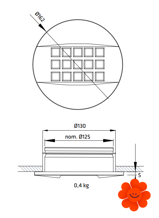 Rohrdurchmesser der Verteilungselemente 125 mm