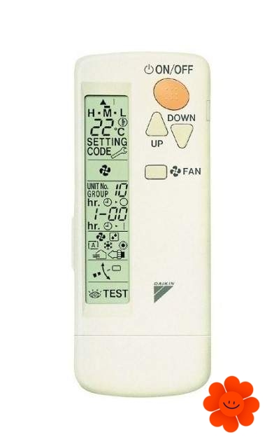 Diese weiße Fernbedienung ist zur Bedienung der 4-Weg-Kassettenklimaanlagen Daikin Serie FCAG-B bestimmt.