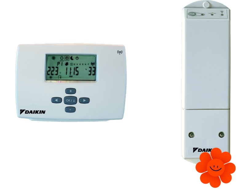 Der kabellose Raumthermostat Daikin EKRTR bietet eine einfache und bequeme Regulierung der Innentemperatur und der ideale Komfort mit einem niedrigen Energieaufwand. Der Thermostat hat mehrere Modi, dank denen die Raumtemperatur Ihren Vorstellungen entspricht. Alle notwendigen Informationen zeigen sich auf dem LCD-Display, die Steuerung mittels der kabellosen Fernbedienung. Als alternative Steuerung ist die Installation der externen Fühler Daikin EKRTETS in die Fußbodenbeheizung möglich. Die richtige Funktionierung sichert der programmierbare Wochentimer, der zwei einstellbare Benutzer und fünf voreingestellte Programme mit sogar zwölf Aktivitäten am Tag bietet.