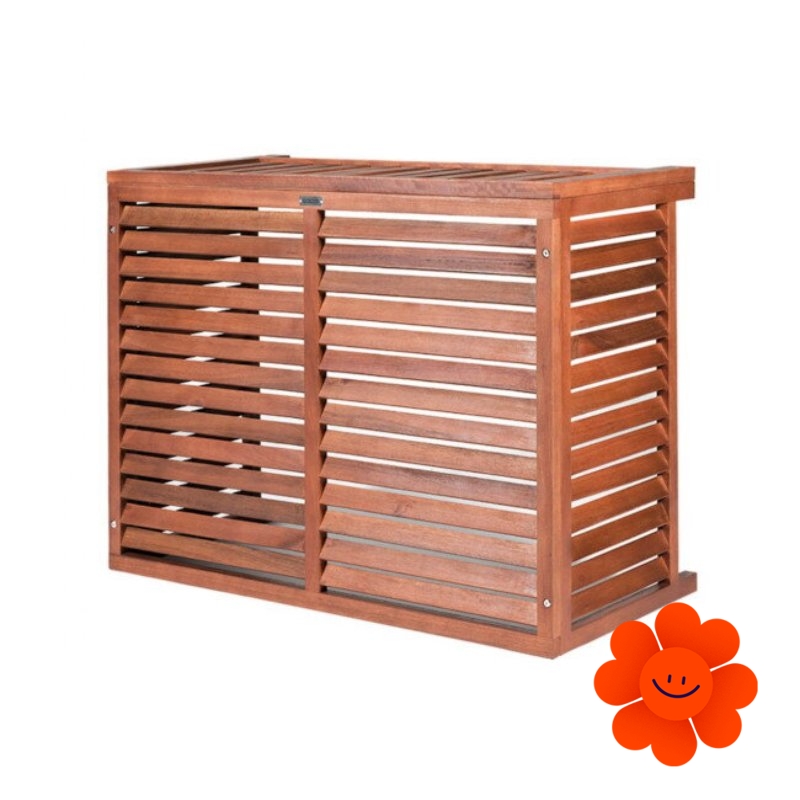 Dank der Herstellung aus Eukalyptusholz bietet es zudem Schutz vor Fäulnis. Seine Konstruktion ist darauf ausgelegt, Ihr Außengerät vor Diebstahl, schlechtem Wetter und Beschädigungen zu schützen. Es verfügt über schräge Lamellen, die für eine ausreichende Luftzirkulation sorgen.Die Montage der Holzabdeckung ist sehr einfach und die Abdeckung kann jederzeit entfernt werden, wenn eine Wartung des Außengeräts erforderlich ist.