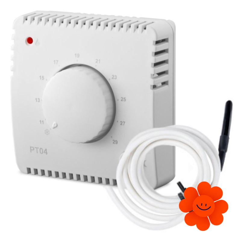 Der Elektrobock PT04-EI ist ein Raumthermostat zur Regelung der Temperatur in Kombination mit anderen Heizgeräten wie Infrapaneelen, elektrischen Konvektoren, Heißluftventilatoren, Fußbodenheizung oder elektrischen Heizkörpern. Der zusätzliche externe Sensor kann an einem anderen Ort angebracht werden, an dem die Temperatur gemessen werden soll, z. B. am Boden für die Fußbodenheizung. Der Thermostat verfügt über Grundfunktionen mit zusätzlicher Nachtabsenkungsfunktion. Die Nachtabsenkung kann die Temperatur für 8 Stunden um 3 °C senken und wiederholt sich täglich. Durch die Temperaturregelung des angeschlossenen Geräts können Sie bis zu 30 % Energie sparen.