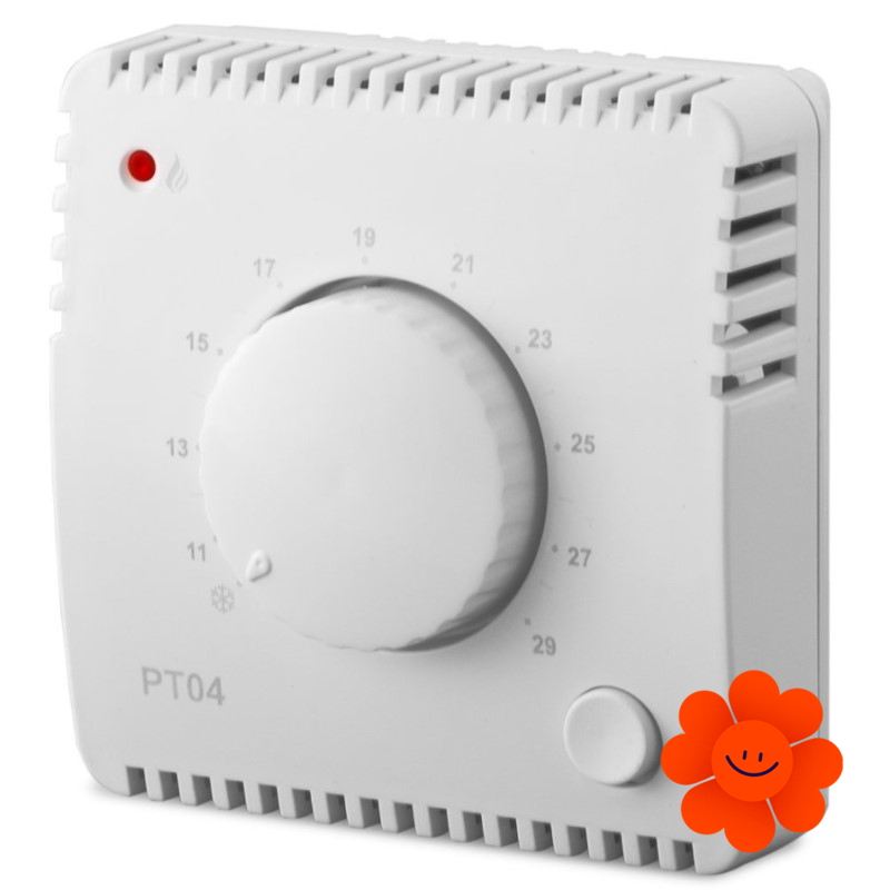 Der Elektrobock PT04 ist ein Raumthermostat zur Temperaturregelung in Kombination mit anderen Heizgeräten wie Infrarotpaneelen, elektrischen Konvektoren, Ventilatoren, Fußbodenheizung (PT04-EI mit externem Sensor) oder elektrischen Heizkörpern. Der Thermostat bietet grundlegende Funktionen und zusätzlich die Nachtabsenkungsfunktion. Diese kann die Temperatur für 8 Stunden um 3 °C absenken und wiederholt sich täglich. Durch die Regelung des angeschlossenen Geräts können Sie bis zu 30 % Energie einsparen.