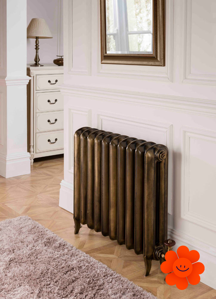 Dekorative Anstriche heben den historischen Charakter dieser Heizkörper hervor. Die Galvanisierung des Kupfers gibt dem Material einen ursprünglichen Alterungseffekt.