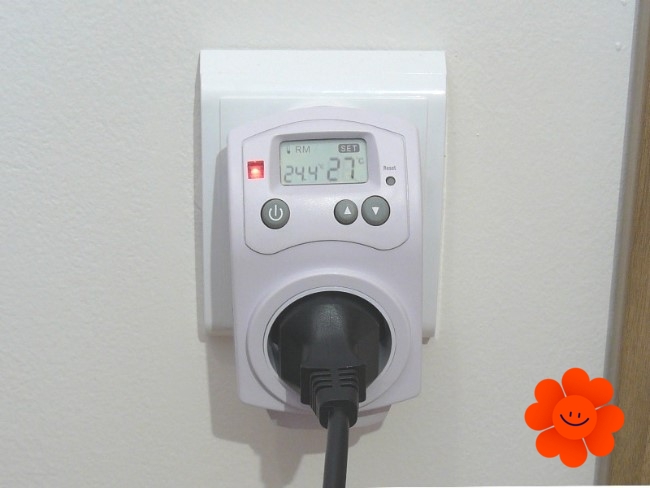 Fenix TH 810 ist Typ eines Steckendosenthermostats, der eine Steckendose nach der eingestellten Raumtemperatur schaltet.