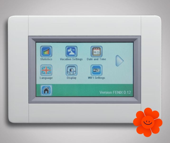 Die Steuereinheit verfügt über Touchscreen LCD (4,3“) mit der wählbaren Hintergrundfarbe und über verschiedene voreingestellte Modi und Anschlussmöglichkeit an Hausnetzwerk Wi-Fi.