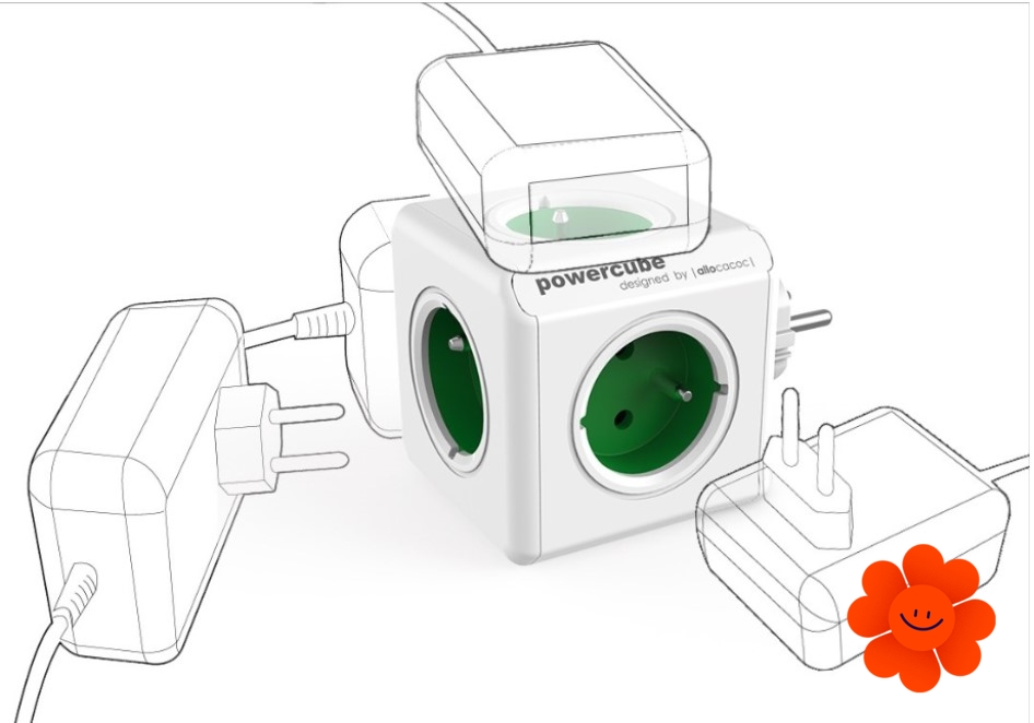 Das Grundmodell der Reihe PowerCube in der grün-weißen Ausführung ist ein Multifunktions-Steckdosensystem, das Ihnen die Anschlussmöglichkeit in fünf Steckdosen anbietet (250V~, 16A, 3680W). Sie können diese Anlage statt der unästhetisch aussehenden klassischen Doppelstecker und Verlängerungskabel anwenden. Es geht um Geräte, deren Design und Funktion attraktiver sind. Dank seiner Anordnung von Steckdosen kommt es nicht zu nutzlosem Blockieren von anderen Steckdosen und Sie können zugleich alle Steckodesen benutzen.