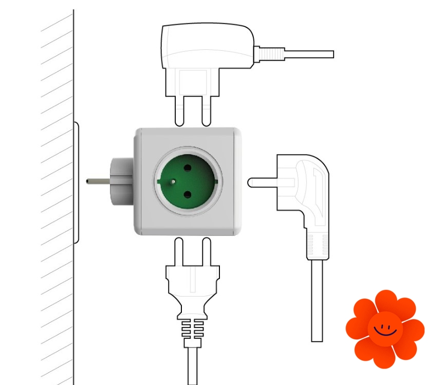 Sie werden gleichzeitig einfach bis 4 Elektrogeräte anschließen und dank 2 USB Anschlüssen können Sie auch gleichzeitig Ihre Mobilgeräte aufladen (Tablet, Handy, usw.). Sie ermöglicht schnelle Ladung. Sie können die USB Version allein gerade in die Steckdose anschließen oder es ist möglich, sie mit anderen PowerCube Versionen zu kombinieren.