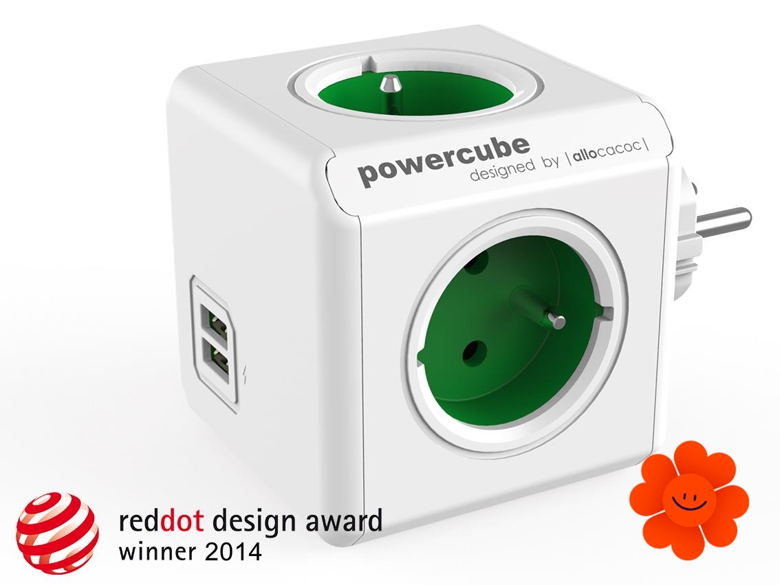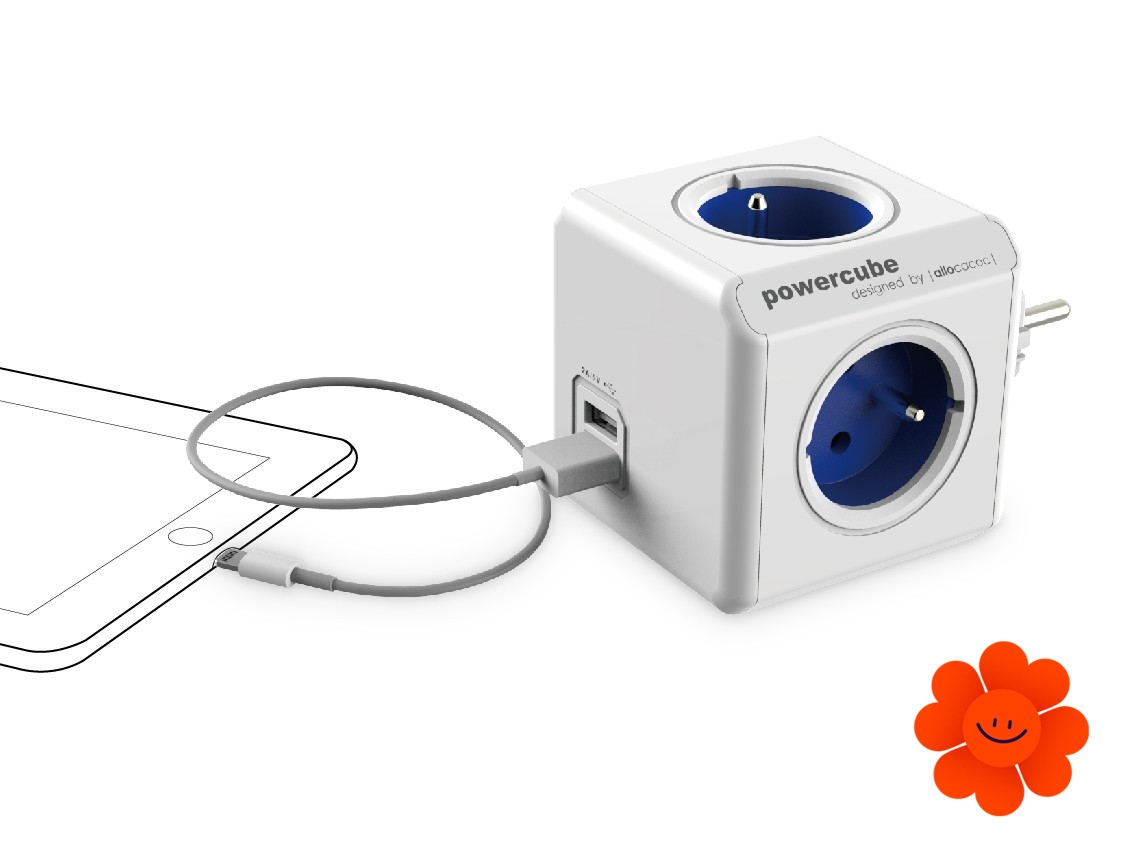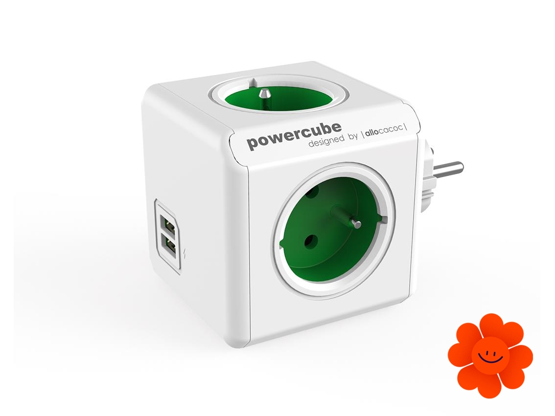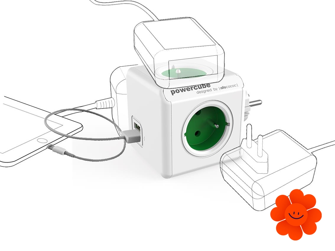 Sie können gleichzeitig einfach bis 4 Elektrogeräte anschließen und dank 2 USB Anschlüssen können Sie auch Ihre Mobilgeräte aufladen (Tablet, Handy, usw.). PowerCube ermöglicht schnelle Ladung. Sie können die USB Version allein gerade in einer Steckdose anschließen oder es ist möglich, sie mit anderen PowerCube Versionen zu kombinieren.