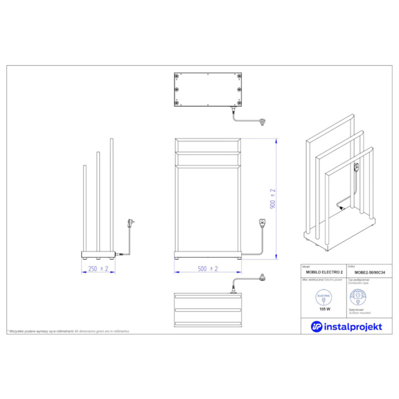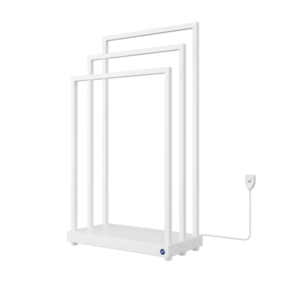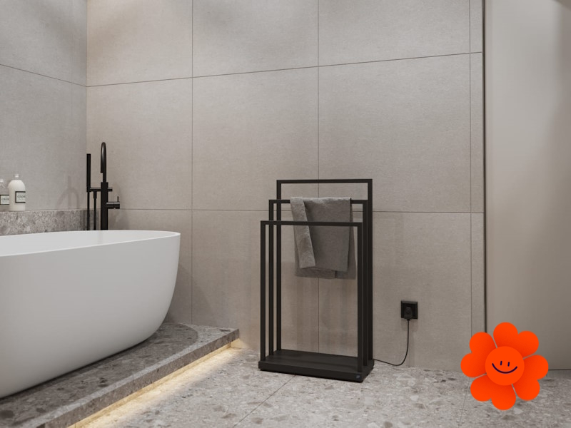 INSTAL-PROJEKT Mobilo ist ein moderner und mobiler Textiltrockner, der einen schnellen und einfachen Zutritt zu trockenen und warmen Handtüchern und Kleidern bietet. Er hat eine stabile Konstruktion mit rutschfesten Füßen. Er ist leicht und hat ein abnehmbares Kabel, was seine Übertragung und Lagerung vereinfacht. Die Bedienung ist intuitiv und befindet sich direkt in der Steckdose.