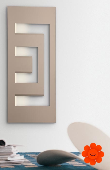 Das Licht und der Schatten ändern die Wahrnehmung des Heizkörpers und der Wand, an welcher er befestigt ist. Feste Teile und Hohlräume schaffen den visuellen Eindruck der Dreidimensionalität. Im Vergleich zu einem üblichen Heizkörper wirkt Irsap Dedalo als ein Kunstwerk.