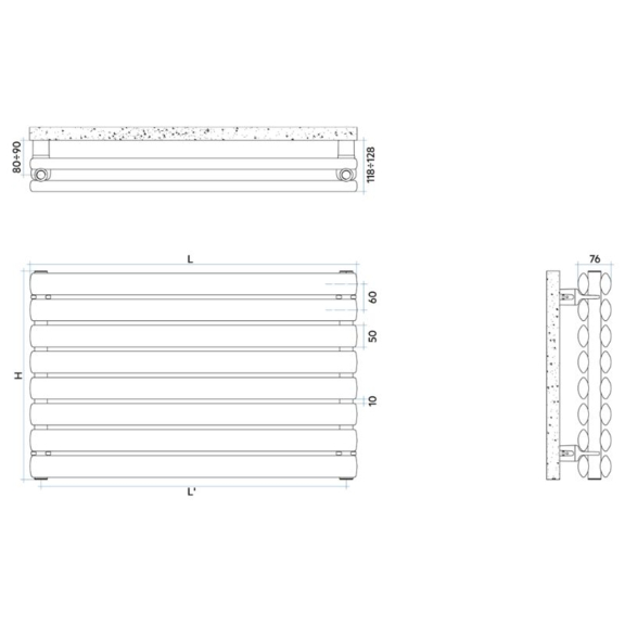 IRSAP Ellipsis_H 2 zweireihiger horizontaler Wasser-Designheizkörper