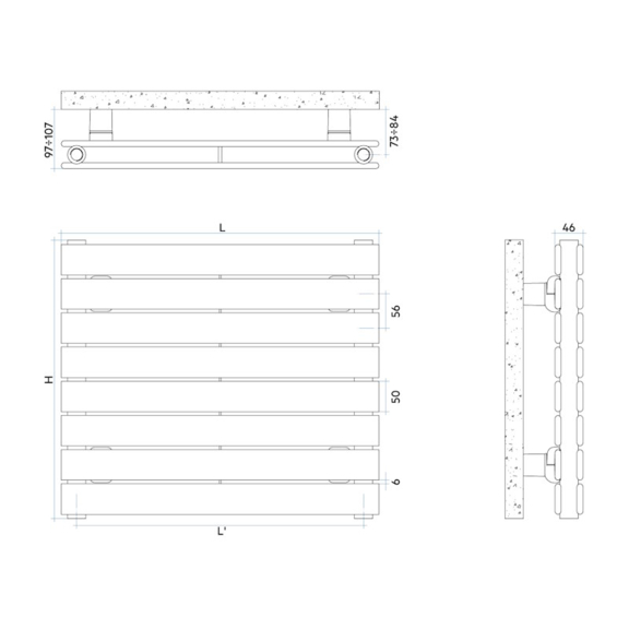 Das horizontale Modell Piano 2 zeichnet sich durch eine modulare Bauweise aus, die es ermöglicht, Größe und Leistung nach Bedarf anzupassen. Der Heizkörper ist in 9 verschiedenen Längen erhältlich, in Konfigurationen von 4 bis 30 Elementen, mit einer Heizleistung von 225 bis 3392 W. Es ist auch eine einreihige Version des Heizkörpers verfügbar.