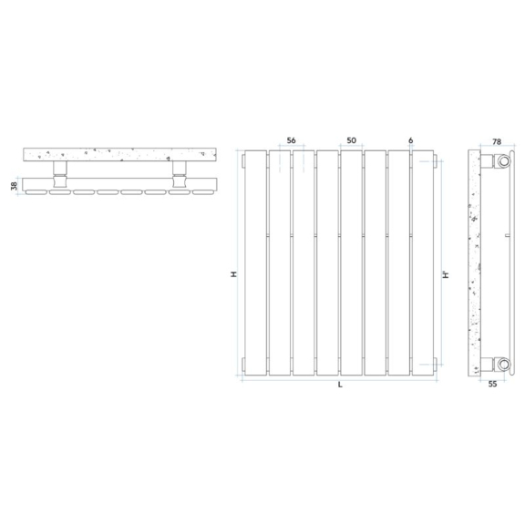 | Heizkörperlänge (mm): | 232 | 344 | 456 | 568 | 680 | 792 | 904 | 1016 | 1128 | 1240 |