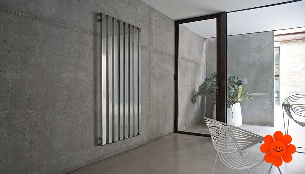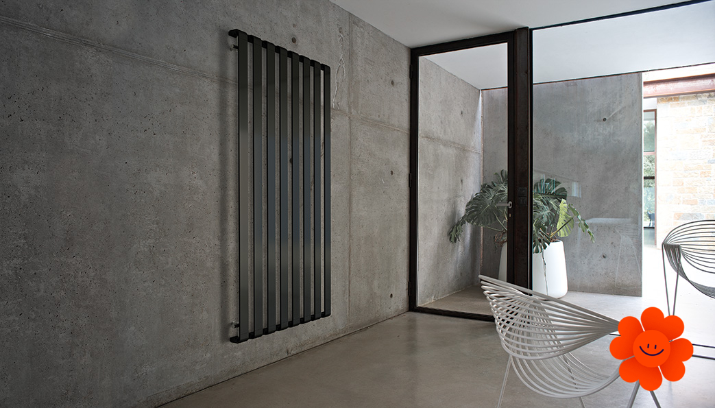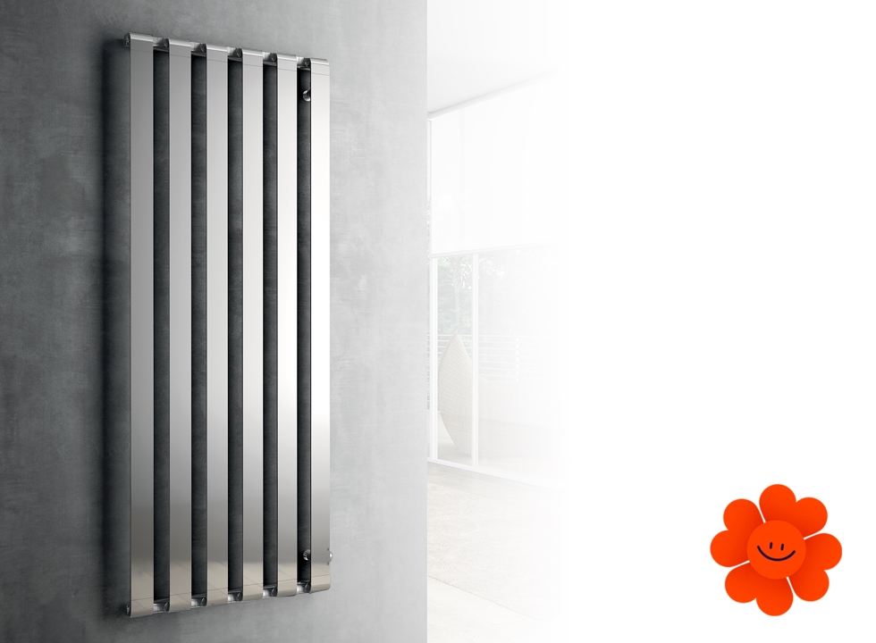 Step V - Modell "Vertical“ ist ein eleganter Designheizkörper, der für jeden modernen Innenraum, Flur, jede Halle sowie jedes Wohnzimmer geeignet ist. Dank seinen vertikal angeordneten breiten Heizprofilen, kurz gebogenen Linien und seiner reinen einfachen Form gehört dieser Heizkörper zu den exklusiven Designstücken.