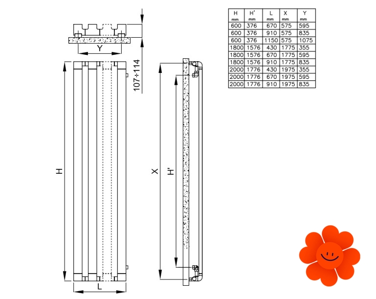 • Wandbefestigungen haben dieselbe Oberfläche wie der Heizkörper • 2 versteckte Entlüftungsventile mit Abdeckungen • installierter hydraulischer Ventilsatz in gleicher Ausführung wie der Heizkörper und ausgestattet mit dem Kupferbeschlag (Durchmesser 12, 14 und 15 mm) und vielschichtige Rohre (Dicke 14 x 2 und 16 x 2)