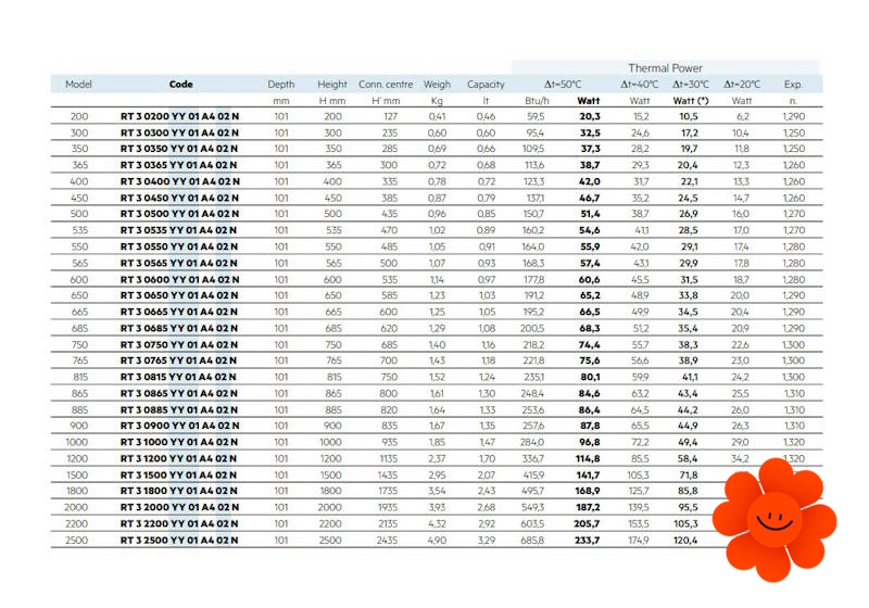 Wir helfen Ihnen bei der Erstellung einer Sonderanfertigung. Rufen Sie uns von Montag bis Freitag zwischen 09:00-17:00 Uhr an.Umrechnungstabelle der Anzahl der Zellen pro Länge des Heizkörpers IRSAP Tesi 3