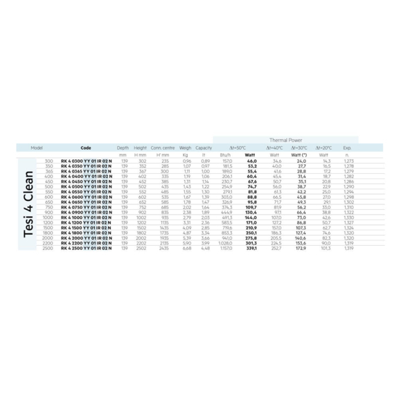 Wir helfen Ihnen bei der Erstellung einer Sonderanfertigung. Rufen Sie uns von Montag bis Freitag zwischen 09:00-17:00 Uhr an.Umrechnungstabelle der Anzahl der Zellen pro Länge des Heizkörpers IRSAP Tesi 4 Clean