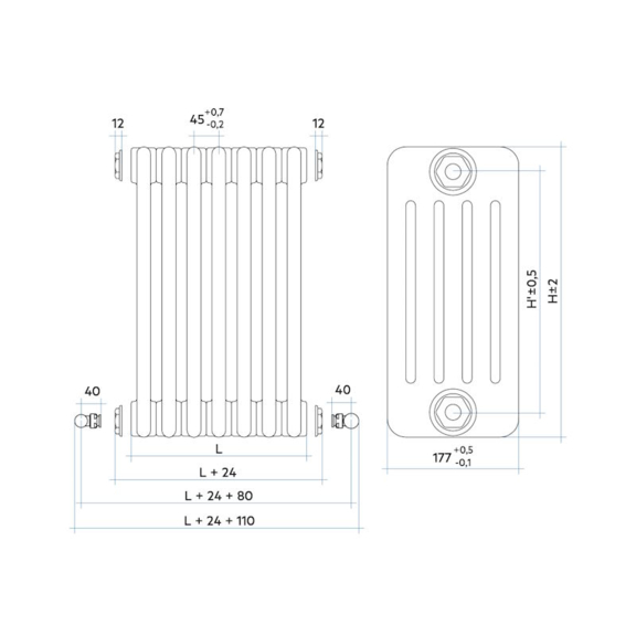 | Heizkörperlänge (mm): | 1440 | 1485 | 1530 | 1575 | 1620 | 1665 | 1710 | 1755 | 1800 |