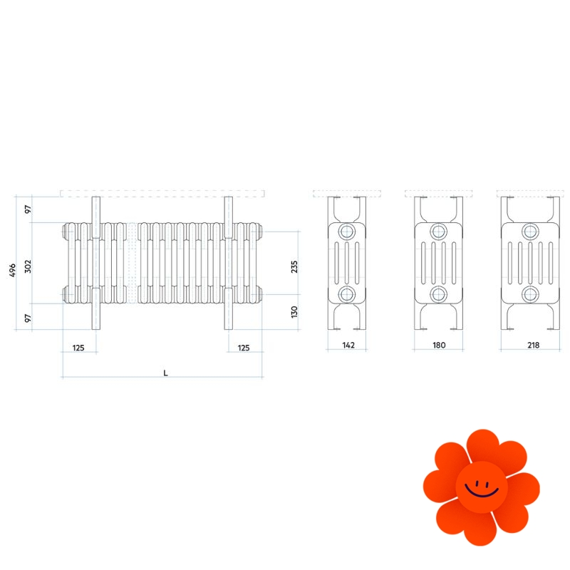 Der Gliederheizkörper Tesi Bench bietet 3 verschiedene Tiefen, 7 verfügbare Längen und eine einheitliche Höhe von 496 mm, wodurch er sich leicht an unterschiedliche räumliche Anforderungen anpassen lässt.