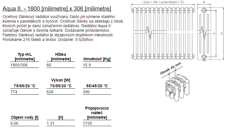 In unserem Angebot finden Sie die Gliederheizkörper in fünf unterschiedlichen Höhen und Tiefen mit der breiten Palette von Anschlussmöglichkeiten. Sie können den Gliederheizkörper mit einer gewünschten Zahl von Gliedern bestellen. Aber nur in der Kombination mit einer Größe des Heizkörpers aus unserem Angebot.
