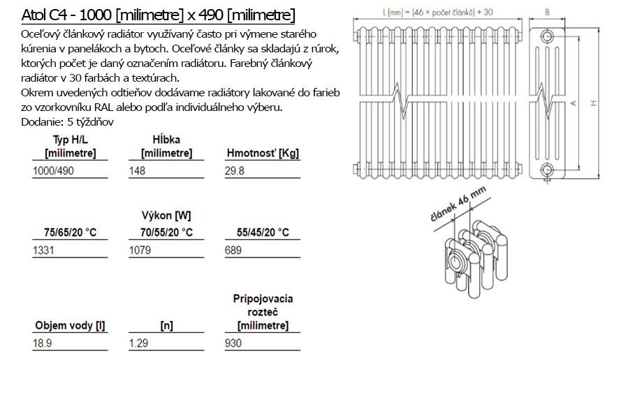 In unserem Angebot finden Sie die Gliederheizkörper in fünf unterschiedlichen Höhen und Tiefen mit der breiten Palette von Anschlussmöglichkeiten. Sie können den Gliederheizkörper mit einer gewünschten Zahl von Gliedern bestellen. Aber nur in der Kombination mit einer Größe des Heizkörpers aus unserem Angebot.