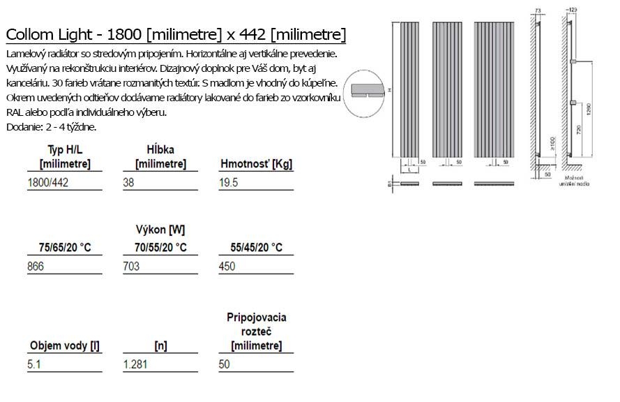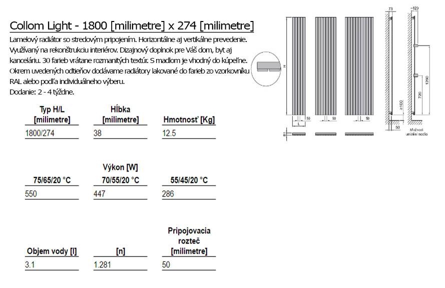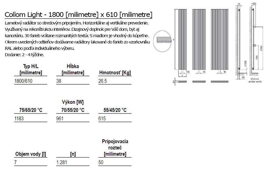 Der Designheizkörper Collom Light ist ein funktionelles architektonisches Designstück für Ihren Innenraum. Er kann auch farblich dem Raum angepasst werden. In unserem Angebot finden Sie 30 Farboptionen. Wir empfehlen Ihnen, einen Chrom-Handtuchhalter und ein Thermostat-Set aus dem Chrom nachzukaufen.