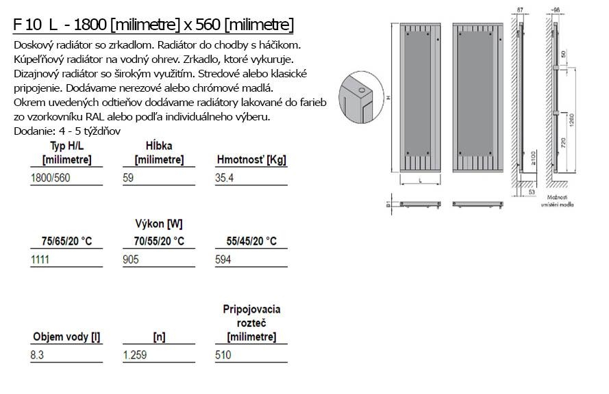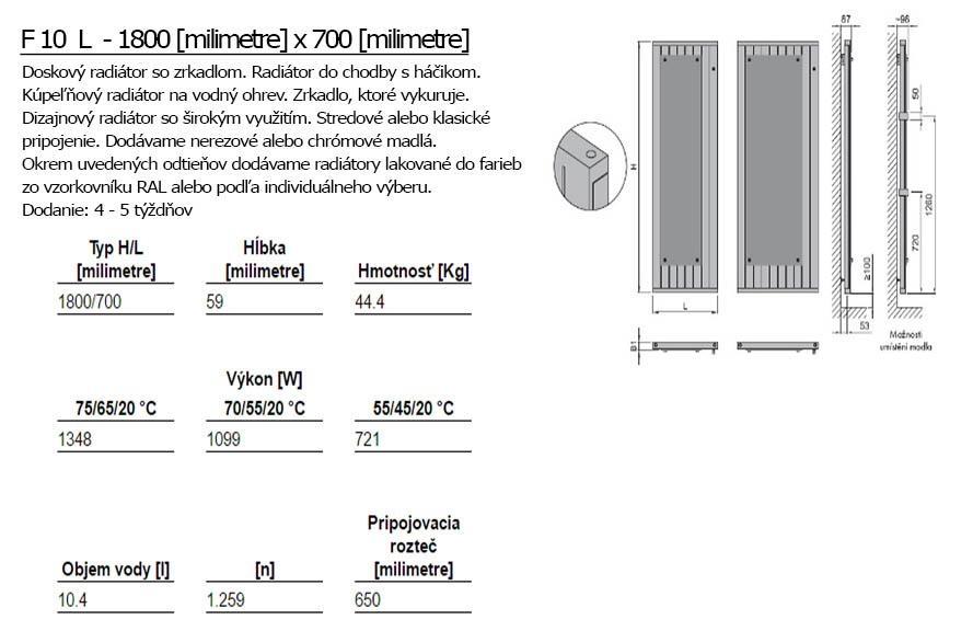 Der Designheizkörper ISAN Exact F10 L mit dem Spiegel ist ein praktisches Designstück für jede Wohnung oder jedes Haus. Der Raum wird durch den Spiegel angenehm beheizt und optisch vergrößert. Dieser Plattenheizkörper mit dem Spiegel kann um die Haken ergänzt werden. Sie können ihn auch als einen praktischen und beheizten Kleiderständer mit dem Spiegel für den Flur benutzen.