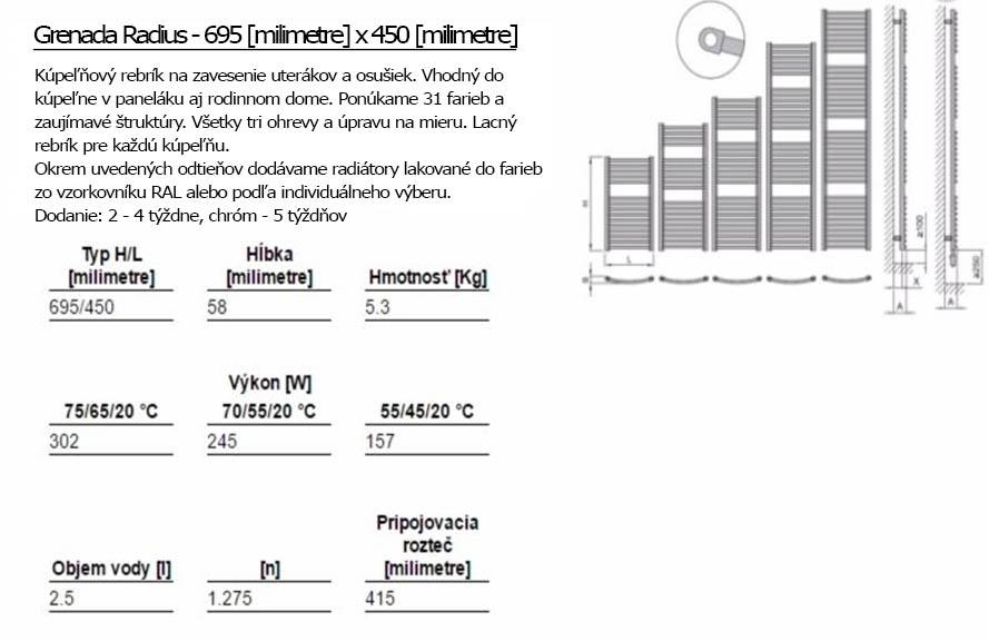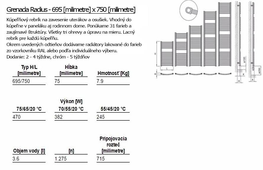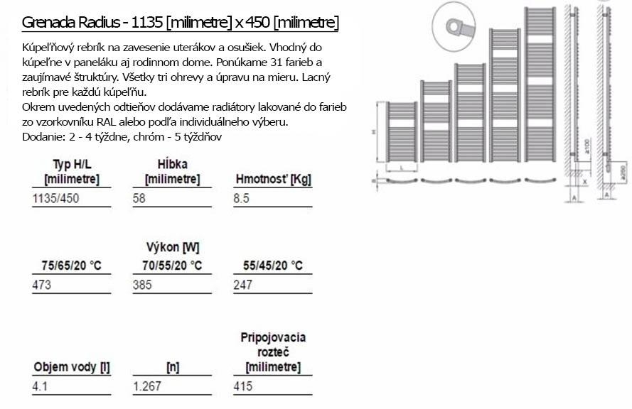 Der Heizkörper Grenada Radius ist in 30 Farbvarianten und Chromausführung verfügbar. Er arbeitet auf der Basis vom elektrischen sowie dem Warmwasser-Betrieb und deshalb eignet sich dieser für jedes Badezimmer. Dieser Heizkörper mit gebogenen Rohren entspricht auch den Sicherheitsanforderungen.