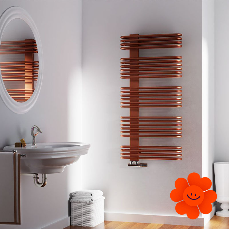 Dieser Badheizkörper wird an das zentrale Heizsystem mit dem Mittelanschluss angeschlossen. Er ist auch mit dem elektrischen Betrieb verfügbar.