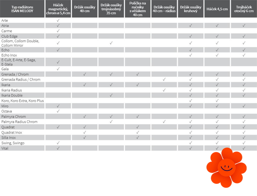 Für die richtige Wahl eines Halters für Ihr Heizkörper der Reihe MELODY sehen Sie sich die Tabelle unter Bildern unten an.
