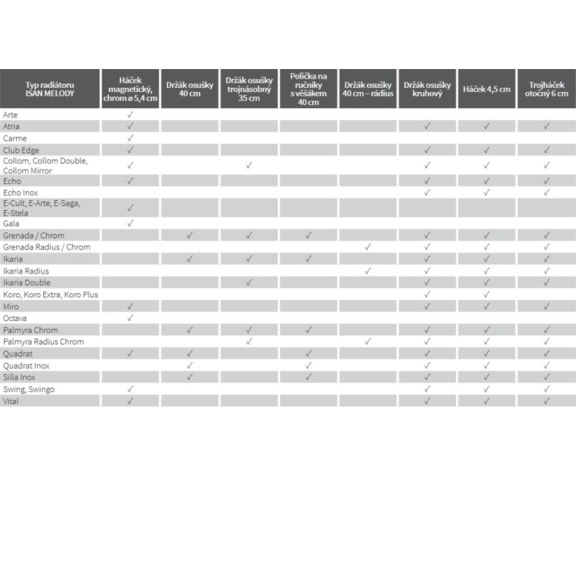 Im Angebot in 4 Größen gemäß Breite des gewählten Heizkörpers Vivo: 300 mm, 400 mm, 500 mm und 600 mm.