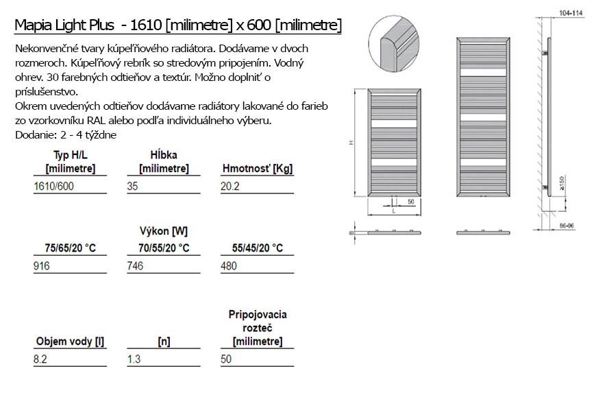 Wählen Sie aus zwei Größenvarianten und der breiten Farbpalette und passen Sie diesen Heizkörper auf Maß an. Mapia Light PLUS arbeitet auf der Basis vom Warmwasser-Betrieb. Für eine bessere Nutzung empfehlen wir Ihnen, das Zubehör für diesen Heizkörper nachzukaufen.