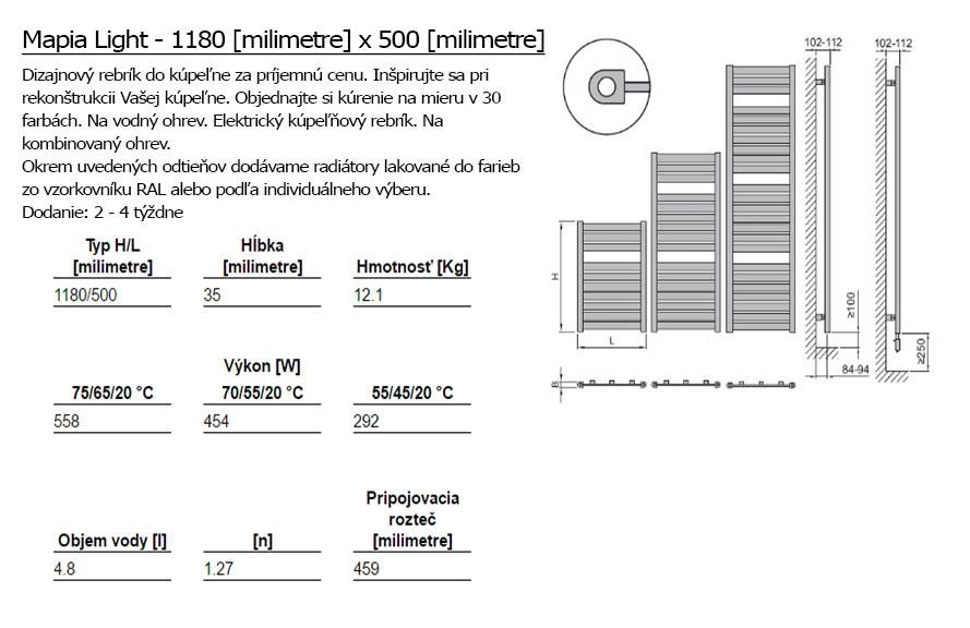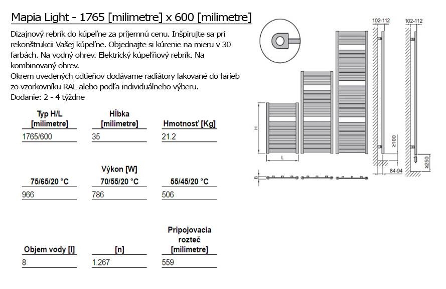 Wählen Sie aus unserem breiten Angebot von Abmessungen und breiter Farbpalette. Passen Sie diesen Heizkörper auf Maß an. Mapia Light arbeitet auf der Basis vom elektrischen Betrieb oder Warmwasser-Betrieb.