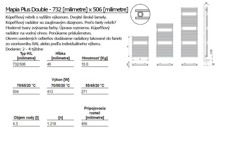 Wählen Sie aus unserem breiten Angebot von Abmessungen und breiter Farbpalette. Passen Sie diesen Heizkörper auf Maß an. Mapia PLUS Double arbeitet auf der Basis vom Warmwasser-Betrieb.
