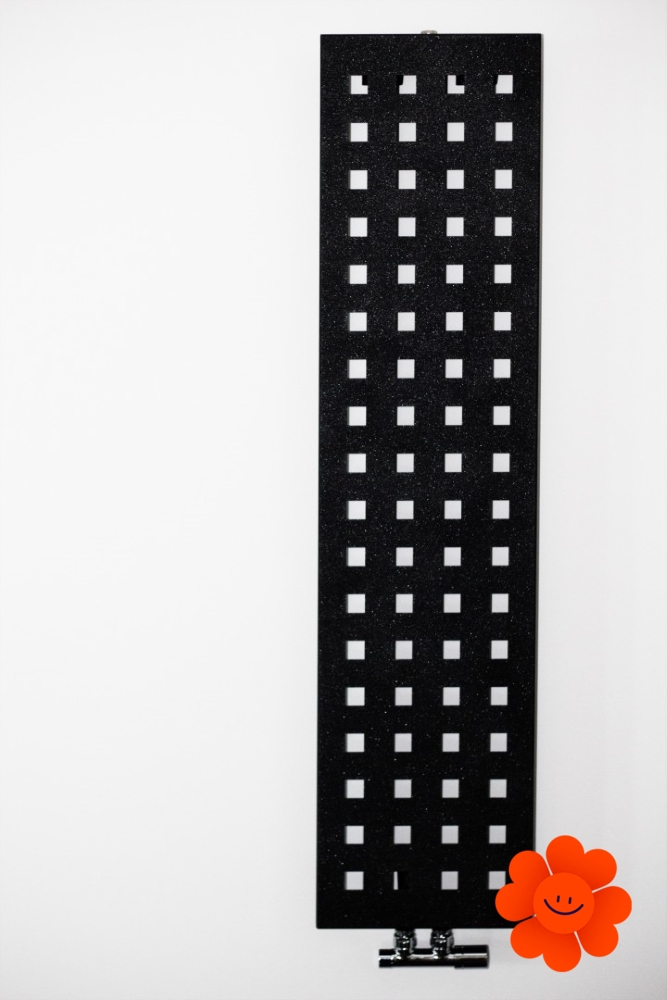 Dieses Modell verfügt über sehr kleine Tiefe. An der Vorderseite seiner Oberfläche befinden sich die luftigen quadratischen Muster. ISAN Solar eignet sich für den Anschluss an das zentrale Heizsystem und kann um einen Edelstahl-Handtuchhalter ergänzt werden.