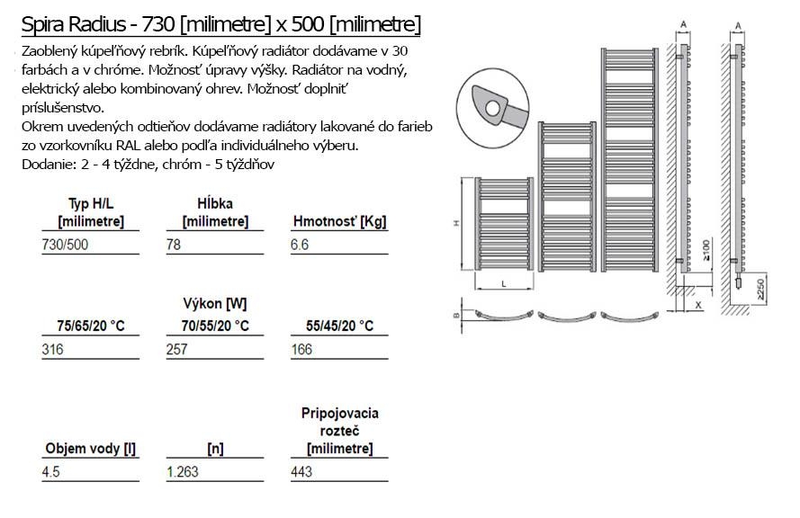 Spira Radius arbeitet auf der Basis vom elektrischen Betrieb und Warmwasser-Betrieb. Sie können aus dem breiten Angebot von Abmessungen wählen.