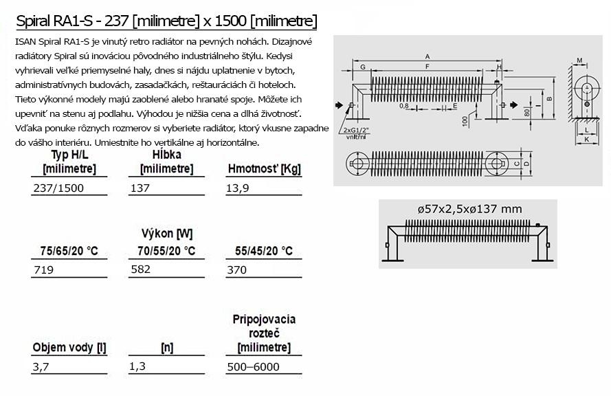 ISAN Spiral RA1-S 57/137 Selbststehender Heizkörper