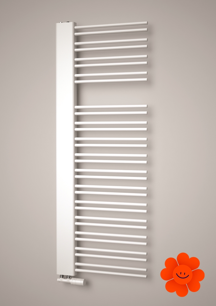Einzelne Rohre des Heizkörpers können links oder rechts gerichtet werden. Dieses Modell kann an das zentrale Heizsystem angeschlossen werden und noch dazu ist er in der zweifarbigen Ausführung erhältlich. Sie können auch andere Farbe von Rohren und der Seitenabdeckung wählen. In unserem Angebot finden Sie die Palette von 30 Farben einschließlich der Texturen und Metallic-Lackierungen.