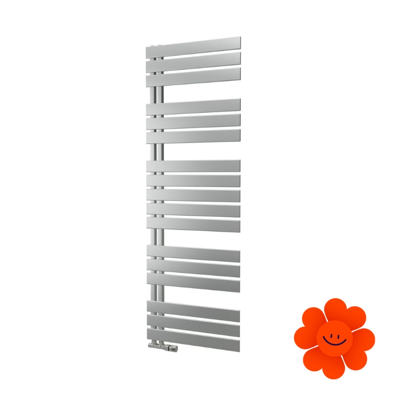 Durch seine ungewöhnliche Form eignet er sich besonders für Badezimmer, wo er dem Raum ein stilvolles Element verleiht. Die breiten horizontalen Profile erleichtern das Aufhängen von Handtüchern, und die stabile Konstruktion sorgt für zuverlässige Leistung und effiziente Wärmeabgabe.