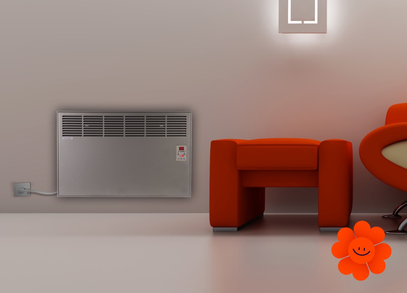 Die Installation erfordert keine zusätzlichen Kosten. Zum Bestandteil der Packung gehören das Zubehör für die Wandmontage und Kunststofffüße. Sie können den Konvektor auf jeden Platz stellen, wo Sie den Zugang zur Elektroenergie haben.