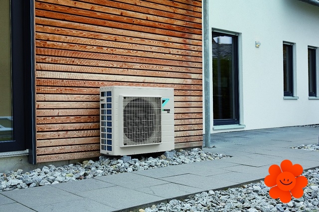 Im Preis: die Innen- und Außeneinheit mit der dekorativen Platte.