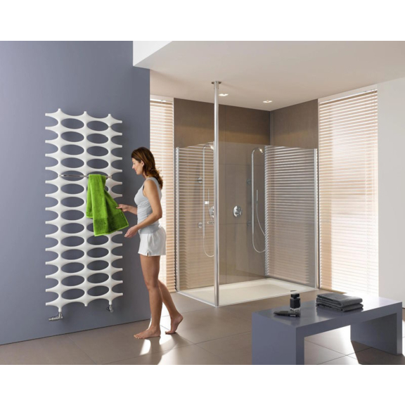 Aufwendige Details verleihen dem Heizkörper ein harmonisches Aussehen –ein Element übernimmt bei der V-Version die Blendenfunktion und verdeckt die komplette Anschlusssituation. Zugleich ist der Thermostatkopf in das Design dieses Einzelelements perfekt integriert. Und auch bei der Kompaktausführung ist z.B. die Befestigung von vorn nicht sichtbar.