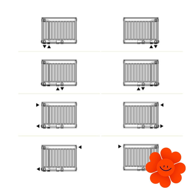 Anschlusstyp: V Plus – der Heizkörper ist mit einem zentralen und rechten oder zentralen und linken Anschluss mit einem Abstand von 50 mm ausgestattet, was eine ästhetischere Installation, eine bessere Temperaturregulierung ermöglicht und ideal für moderne Heizsysteme, einschließlich Niedertemperatursysteme, ist.