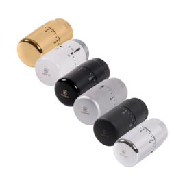 Durch die Auswahl eines Designkopfes können Sie das Ventil noch außergewöhnlicher machen. Zur Auswahl bieten wir einfachere manuelle Köpfe oder Design-Thermostatköpfe.
