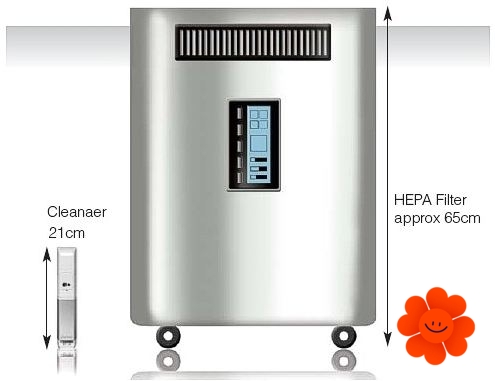 Sein größter Vorzug sind Maße. Er ist nur 21 cm hoch und dank diesem wird er der kleinste Luftreiniger auf dem Markt. Ideal für beliebigen Raum. Dieser Luftreiniger ist geeignet für Hotels, Restaurants, Warteräume, Schulen, Apotheken aber auch für Ihren Haushalt. Er ist auch für einen Raum mit der Fläche 30 m2 geeignet. Einen Raum bis 80 m3 kann er schon bis 5 Minuten reinigen.