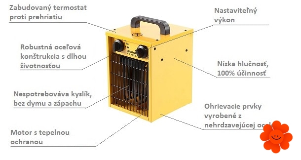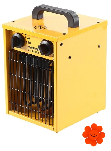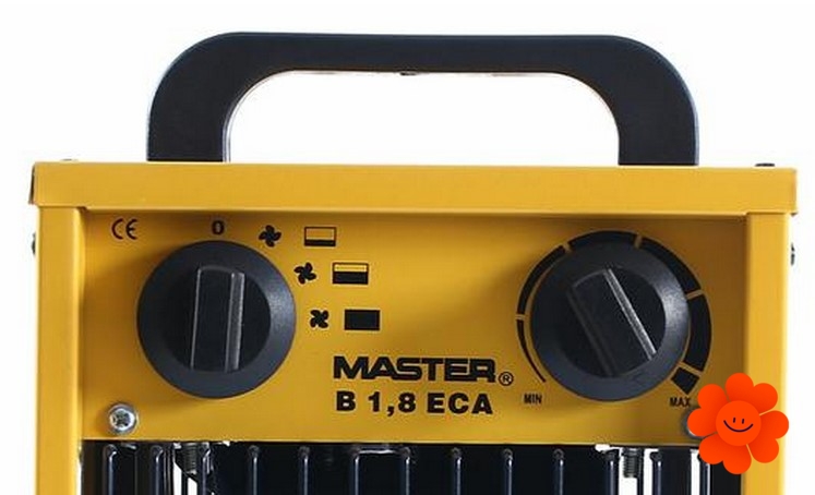 Heizgerät Master B 1.8 ECA hat ein Luftaustauschvolumen von 184 m3/h. Der eingebaute Umschalter ermöglicht die Umschaltung zwischen den Leistungen - Lage 1 für das Ausschalten, Lage 2 für die Leistung 0,65 kW, Lage 3 für die Leistung 1,3 kW und Lage 4 für die Leistung 2,0 kW. Dieses elektrisches Heizgerät bietet dem Verbraucher das günstige Verhältnis an: Preis : Leistung, kein Sauerstoffverbrauch, es produziert keinen Rauch oder Geruch und ist geräuscharm. Die Motoren sind mit dem Wärmeschutz erledigt und die widerstandsfähige metallische Ausführung garantiert den Langleibigkeit.