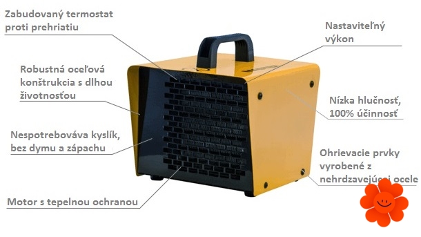 Heizgerät Master B 2 PTC hat ein Luftaustauschvolumen von 97 m3/h. Der eingebaute Umschalter ermöglicht die Umschaltung zwischen den Leistungen - Lage 1 für die Leistung 1 kW (Heizleistung 860 kcal/h) und Lage 2 für die Leistung 2 kW (Heizleistung 1.720 kcal/h). Dieses elektrisches Heizgerät bietet dem Verbraucher das günstige Verhältnis an: Preis : Leistung, kein Sauerstoffverbrauch, es produziert keinen Rauch oder Geruch und ist geräuscharm. Die Motoren sind mit dem Wärmeschutz erledigt und die widerstandsfähige metallische Ausführung garantiert den Langleibigkeit.
