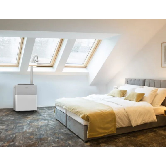 PortaSplit ist jedoch nicht nur eine Sommerlösung – dank der integrierten Wärmepumpe heizt sie auch in der Übergangszeit oder im Winter effektiv. Warme Luft strömt nach unten und schafft ein angenehmes Klima ohne kalte Ecken oder Boden.